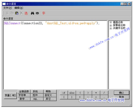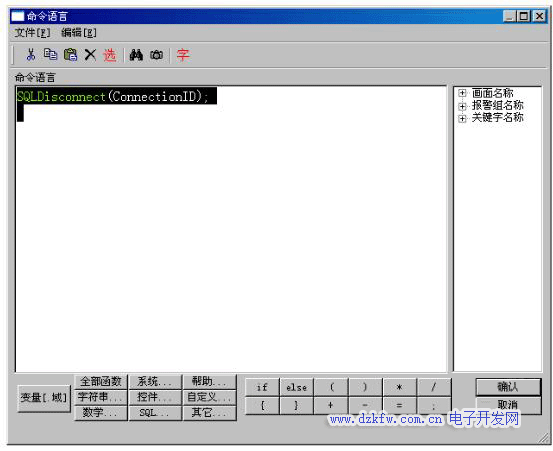 (4)雙擊“按鈕”——“連接SQL”,“命令語言連接”——“按下時”,寫入以下語句: