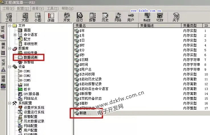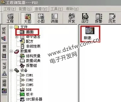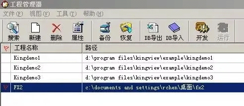 1、新建工程。打開組態王軟件,在“工程管理器”中新建一個工程,如FX2(見下圖1)。