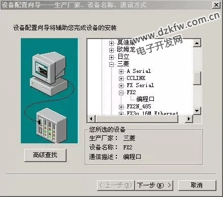 ③選擇“三菱—FX2—編程口”(見下圖3);
