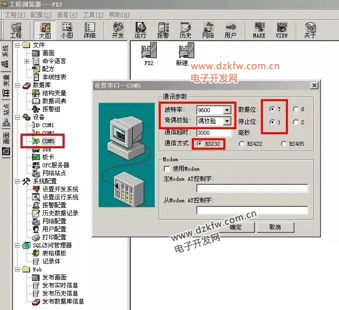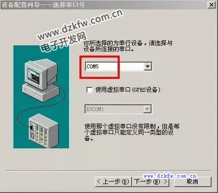 ⑤選擇與FX2系列PLC連接的串口號,如COM5(見下圖5),這個很關鍵,不能搞錯。