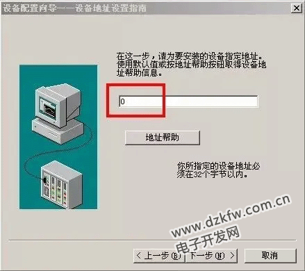 ⑥輸入設備地址,按保持默認的設置,即將設備地址設定為0(見下圖6);