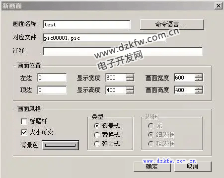 ②在彈出的新畫面窗口中輸入畫面名字,如“test”(見圖11);