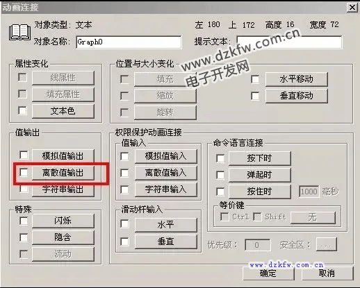 ④雙擊文本標簽,在彈出的動畫連接窗口中單擊離散值輸出(見下圖13);