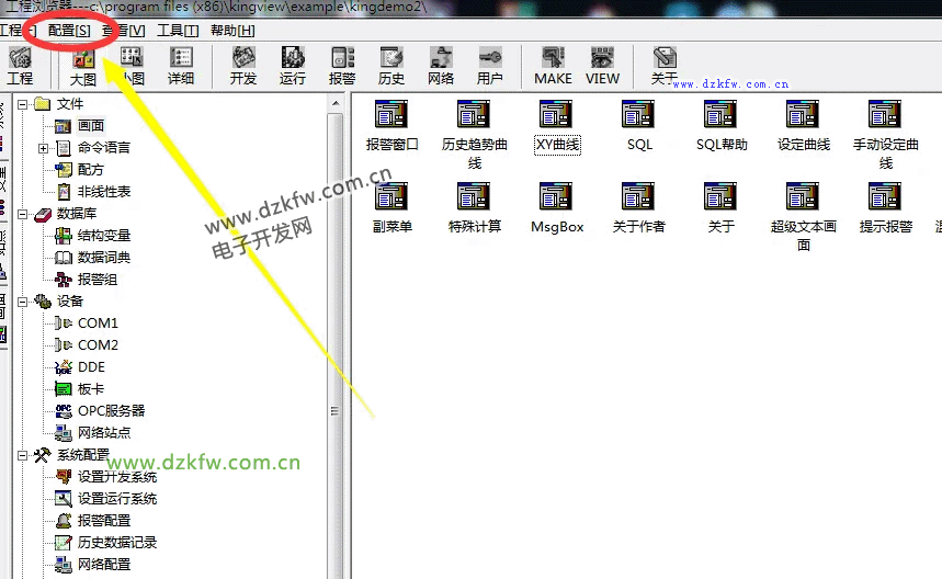 打開組態(tài)王編程軟件,在菜單欄中選擇【配置】并點(diǎn)擊打開 。