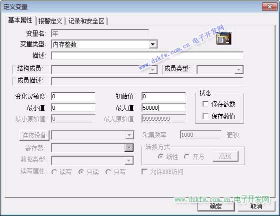 定義8個內存整數變量年、月、日、時、分、秒、星期、周;