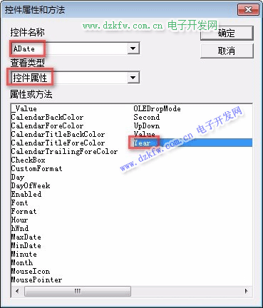 在控件名稱中選擇“ADate”日歷控件;