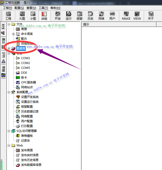 1. 打開組態王編程軟件,進入新建的組態王工程,選擇工程瀏覽器左側大綱項“畫數據庫”,