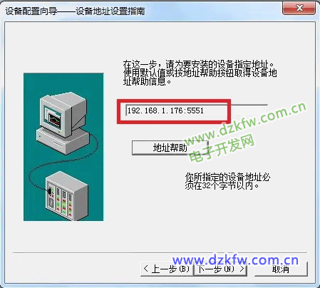 4.輸入CHNet-FX的IP地址,以及PLC端口號5551