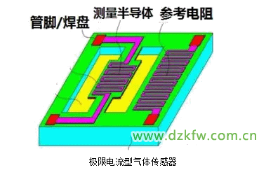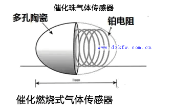 這種傳感器實(shí)際上是基于鉑電阻溫度傳感器的一種氣體傳感器,即在鉑電阻表面制備耐高溫催化劑層,在一定溫度下,可燃?xì)怏w在表面催化燃燒,因此鉑電阻溫度升高,導(dǎo)致電阻的阻值變化。