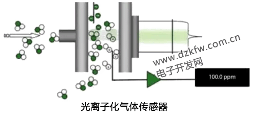 PID使用了一個(gè)紫外光源,通過(guò)離子化,即將有機(jī)物分子電離成可被檢測(cè)器檢測(cè)到的正負(fù)離子,檢測(cè)器捕捉到離子化了的氣體的正負(fù)電荷,并將其轉(zhuǎn)化為電流信號(hào)實(shí)現(xiàn)氣體濃度的測(cè)量。當(dāng)被測(cè)氣體吸收高能量的紫外光時(shí),氣體分子受紫外光的激發(fā)暫時(shí)失去電子成為帶正電荷的離子,氣體離子在檢測(cè)器的電極上被測(cè)出,根據(jù)電極產(chǎn)生的電位檢測(cè)出氣體濃度,檢測(cè)后,離子很快又與電子結(jié)合重新組成原來(lái)的氣體分子。