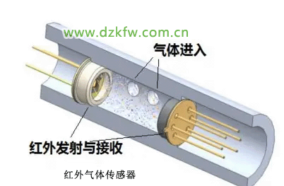 這種傳感器利用氣體對(duì)特定頻率的紅外光譜的吸收作用制成。紅外光從發(fā)射端射向接收端,當(dāng)有氣體時(shí),對(duì)紅外光產(chǎn)生吸收,接收到的紅外光就會(huì)減少,從而檢測(cè)出氣體含量。目前較先進(jìn)的紅外式采用雙波長(zhǎng)、雙接收器,使檢測(cè)更準(zhǔn)確、可靠。