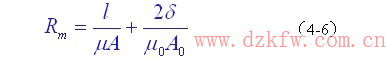 如果空氣隙δ較小,而且不考慮磁路的損失,則總磁阻為