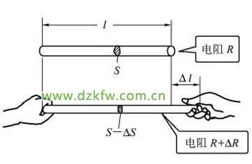 導體貨半導體收外力作用變形時,其電阻值也將隨之變化,這種現象被稱為:應變效應。設有一金屬導體,長度為I,界面劑為S,電阻率為P,則該導體的電阻R為: