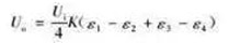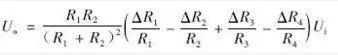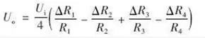 橋路工作時輸入電壓Ui保持恒定不變,當4個橋臂電阻的變化值Δ遠小于初始電阻。且電橋負載電阻為無窮大時,電橋的輸出電壓Uo可以近似用下式表示:
