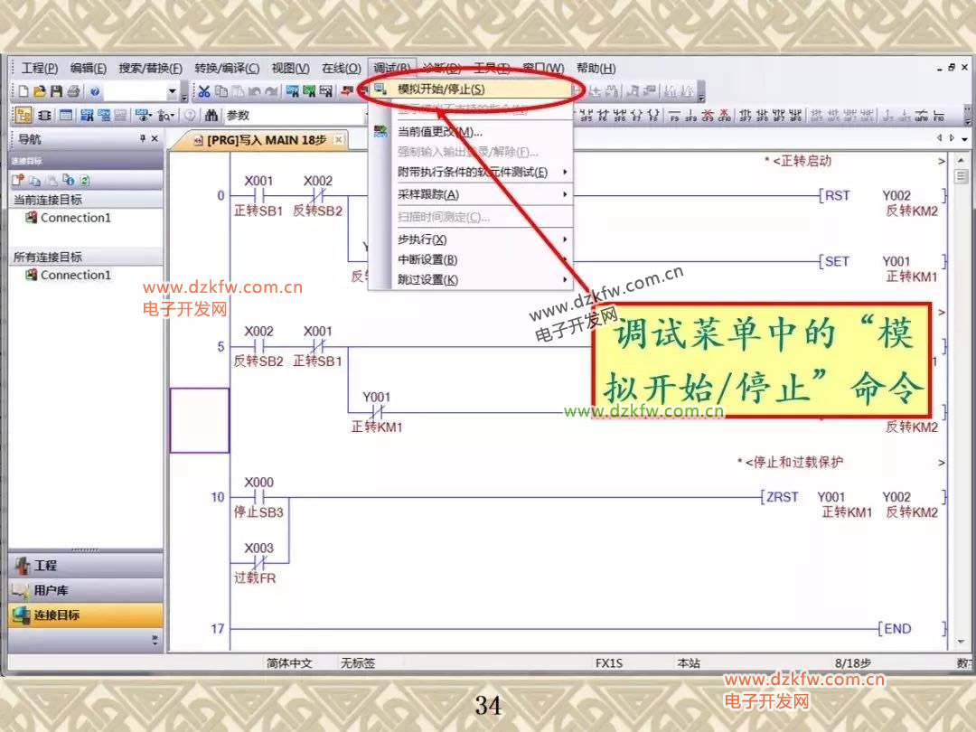 方法1:調用調試菜單下的“模擬開始/停止”命令。