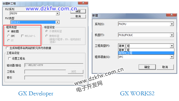 6、隨著三菱PLC產品的不斷升級,許多老型號已經淘汰,所以以后編程監控將以GX Works2為主。但是,目前許多地方還大量使用老型號PLC,所以兩種編程軟件還是要并存一段時間。