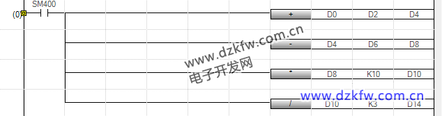 6、FX5U編程指令的修改:比如指令中對ADD/SUB/MUL/DIV的四則運算指令進行了簡化設計,用戶可以通過四則運算符號進行直接輸入。