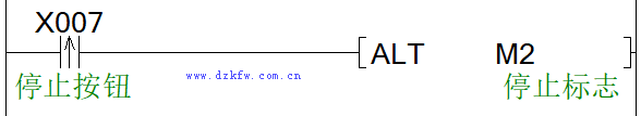當按下一次停止按鈕時,M2導通,按下第二次按鈕時,M2斷開,使用ALT交替輸出指令很容易實現,具體控制在下一步程序體現。