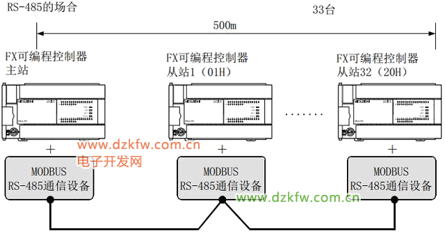MODBUS通信網絡如果是RS-485通信,則可使用1臺主站控制32站從站,如果是RS-232C通信,則可使用1臺主站控制1站從站。