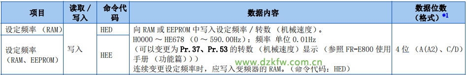 注意:如果寫入的頻率需要斷電保持,請通過HEE命令代碼寫入。