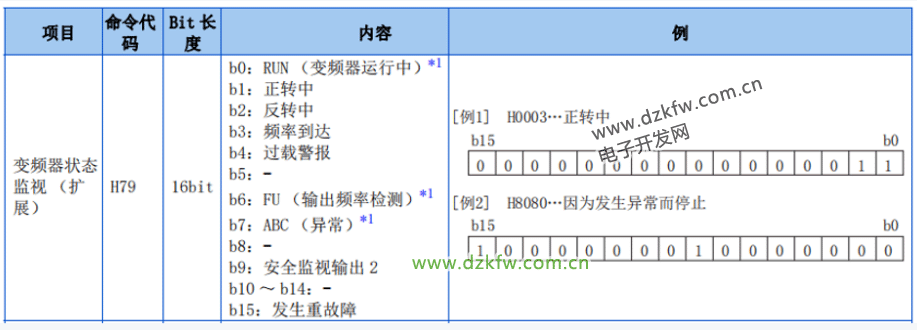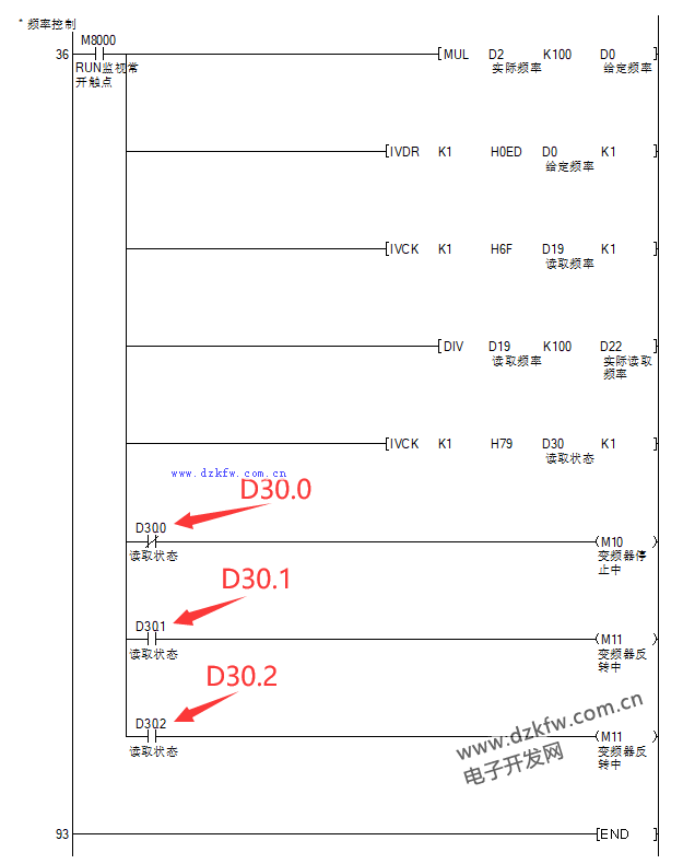 注意:變頻器的頻率是帶兩位小數位的,故讀取出來的頻率需除以100。