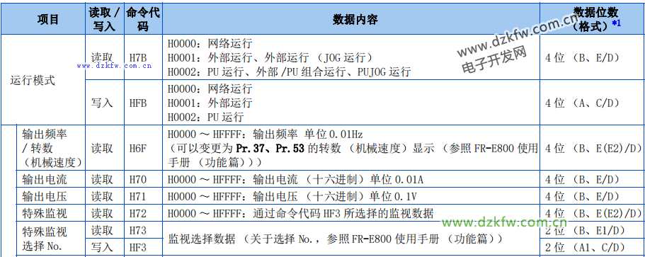 五、應用程序編寫1、通過查閱E800變頻器手冊可得知: