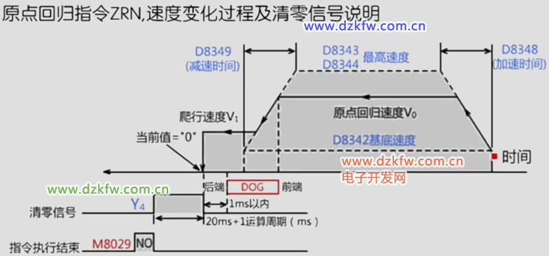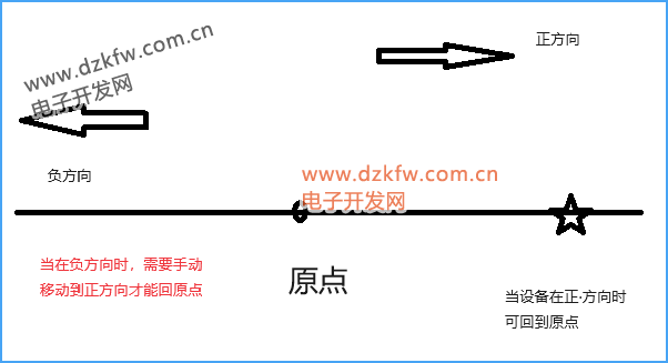 注意:原點回歸方向為反轉方向,當前寄存器的值為減少方向時運行。