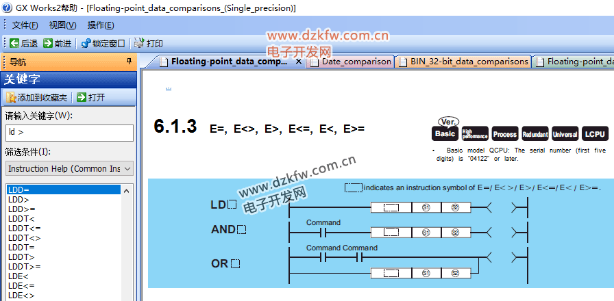 觸點(diǎn)比較指令的語法為: