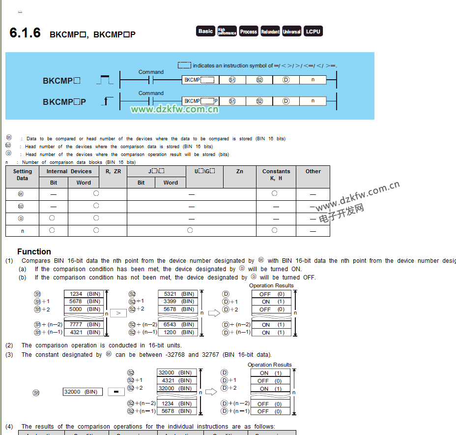 比較二個(gè)值,將結(jié)果(大于,小于,等于)輸出給軟元件(DMCP,32位)