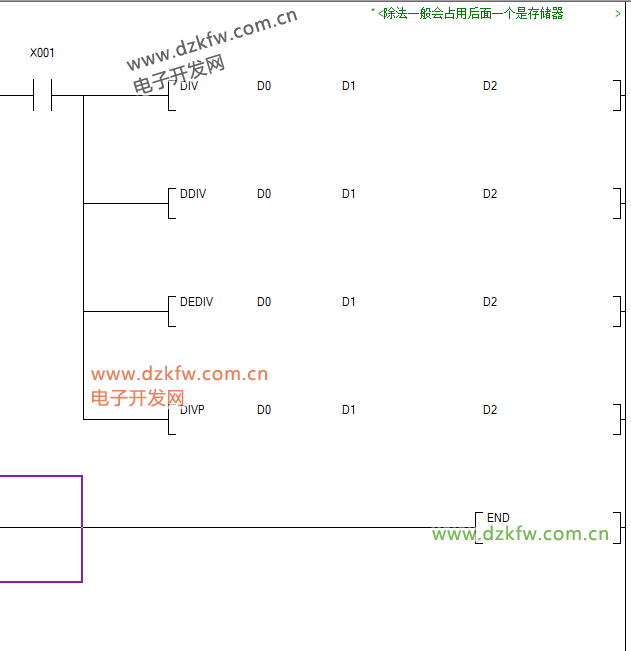 4.2.2 除(DIV)(除法會(huì)占用后面的數(shù)據(jù)存儲(chǔ)器,除法除不完一般會(huì)取近似值)