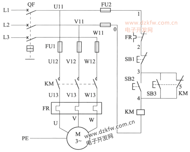 3)電動機由接觸器KM進行控制。