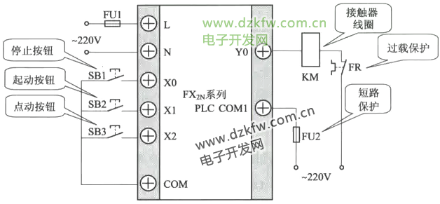 在工程技術中,生產機械除了需要連續控制,還需要點動控制,如機床調整刀架和對刀、立柱的快速移動、工件位置的調整等。請分析該控制線路的控制功能,并用FX2N系列PLC對該控制線路進行技術改造。