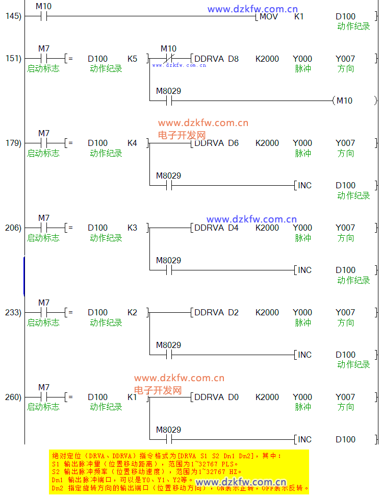 程序編寫涉及幾個指令PLSV、DFLT、DEMUL、DDRVA,有標識說明指令用法