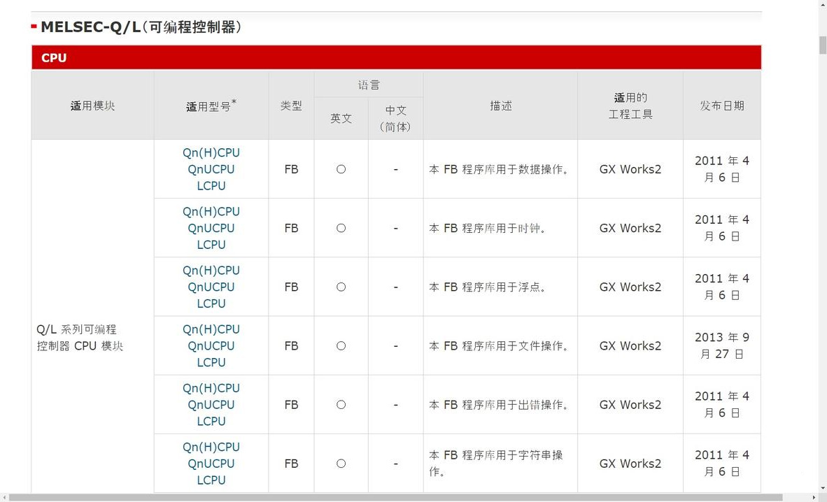 常用的FB功能塊的程序都可以在官網(wǎng)下載,包括CPU的功能塊,定位模塊的功能塊,CC-LINK遠(yuǎn)程I/O模塊的功能塊等。