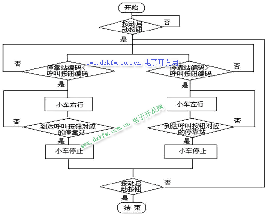 (2)、當(dāng)小車當(dāng)前所處?空镜木幋a小于呼叫按鈕HJ的編碼時,小車向右運行,運行到呼叫按鈕HJ所對應(yīng)的停靠站時停止;