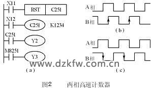 C25l~C255為A–B相型雙計數輸入高速計數器,它們有兩個計數輸入端,某些計數器還有復位和起動輸入端。