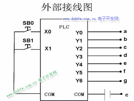 用PLC控制七段數碼管循環顯示數字0~9,顯示間隔1s。