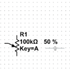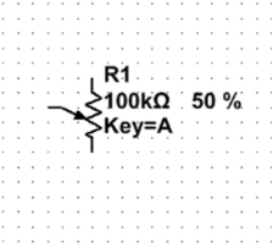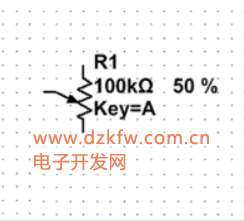 如果電位器的圖標(biāo)中出現(xiàn)“Key=A”,意味著按動(dòng)“A”鍵就可以按照固定的增量增加滑動(dòng)端與下固定端之間的電阻阻值占總阻值的百分比;而按動(dòng)“A”鍵+Shift鍵就可以減小這個(gè)百分比。
