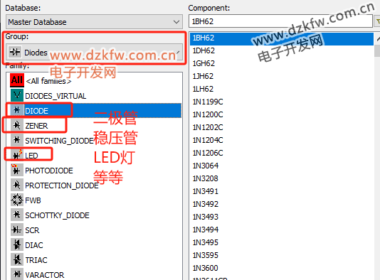 哪個(gè)元件庫?哪個(gè)分組(其實(shí)就是剛才的那些元器件分類)?庫里的哪類器件?