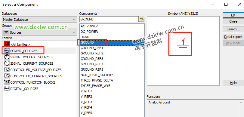選擇“POWER_SOURCES”,點(diǎn)擊“GROUND”,最后點(diǎn)擊“OK”。