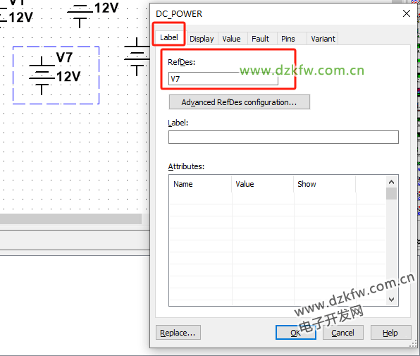 左鍵雙擊元器件圖標(biāo),在彈出的窗口中點(diǎn)擊“Label”選項(xiàng)卡,并在“RefDes:”下填寫新的標(biāo)志符,最后點(diǎn)擊“OK”