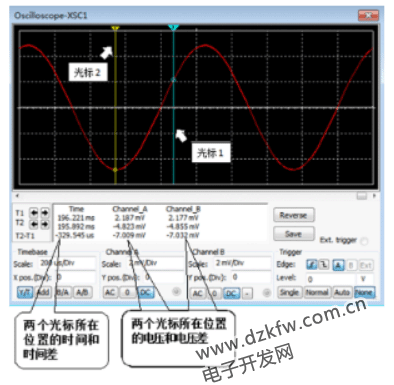 要顯示波形讀數(shù)的精確值時(shí),可用鼠標(biāo)將垂直光標(biāo)拖到需要讀取數(shù)據(jù)的位置