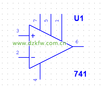 集成運(yùn)放選擇窗口再次跳出。點(diǎn)擊“U1”后面的字母,可以選擇在電路圖圖紙上放置標(biāo)志符為“U1”的LM324AD中的其它集成運(yùn)放。若點(diǎn)擊“New”后面的字母,則可放置新的LM324AD中的集成運(yùn)放。如果不需要放置更多的集成運(yùn)放,點(diǎn)擊“Cancel”關(guān)閉窗口。