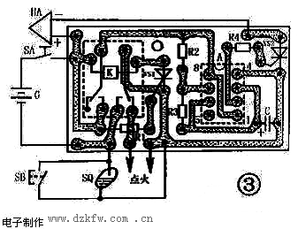 圖3所示是該報警器的印制電路板接線圖,印制電路板實際尺寸約為50mm×35mm。