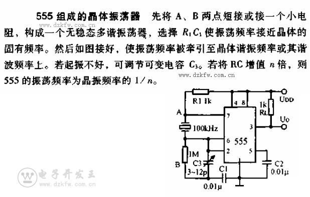 555組成的晶體振蕩器電路圖