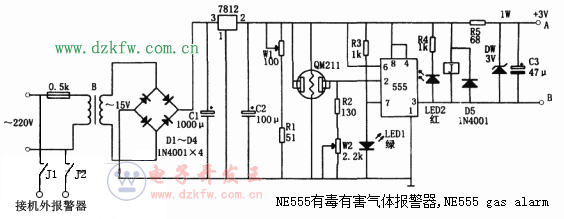 關鍵字:NE555,氣體報警電路圖