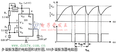 下面是由555電路組成的多諧振蕩器的電路圖和波形圖