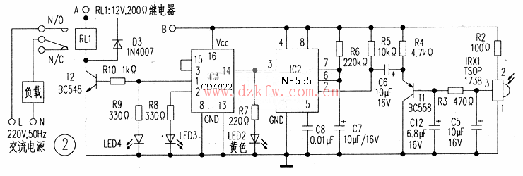 關(guān)鍵字:NE555,遙控開關(guān),遙控開關(guān)電路圖