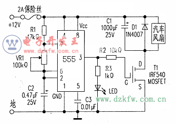 關(guān)鍵字:NE555,風(fēng)扇控制電路