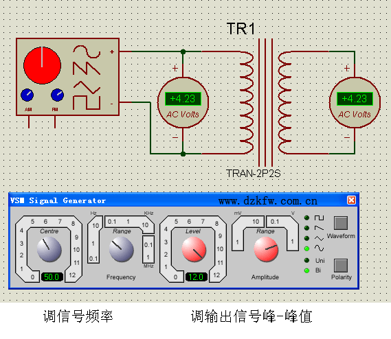 左邊顯示的數(shù)字50就是信號的頻率,右邊顯示的數(shù)字12V,就是信號的峰-峰值,而交流電壓表顯示的電壓值是信號的有效值。